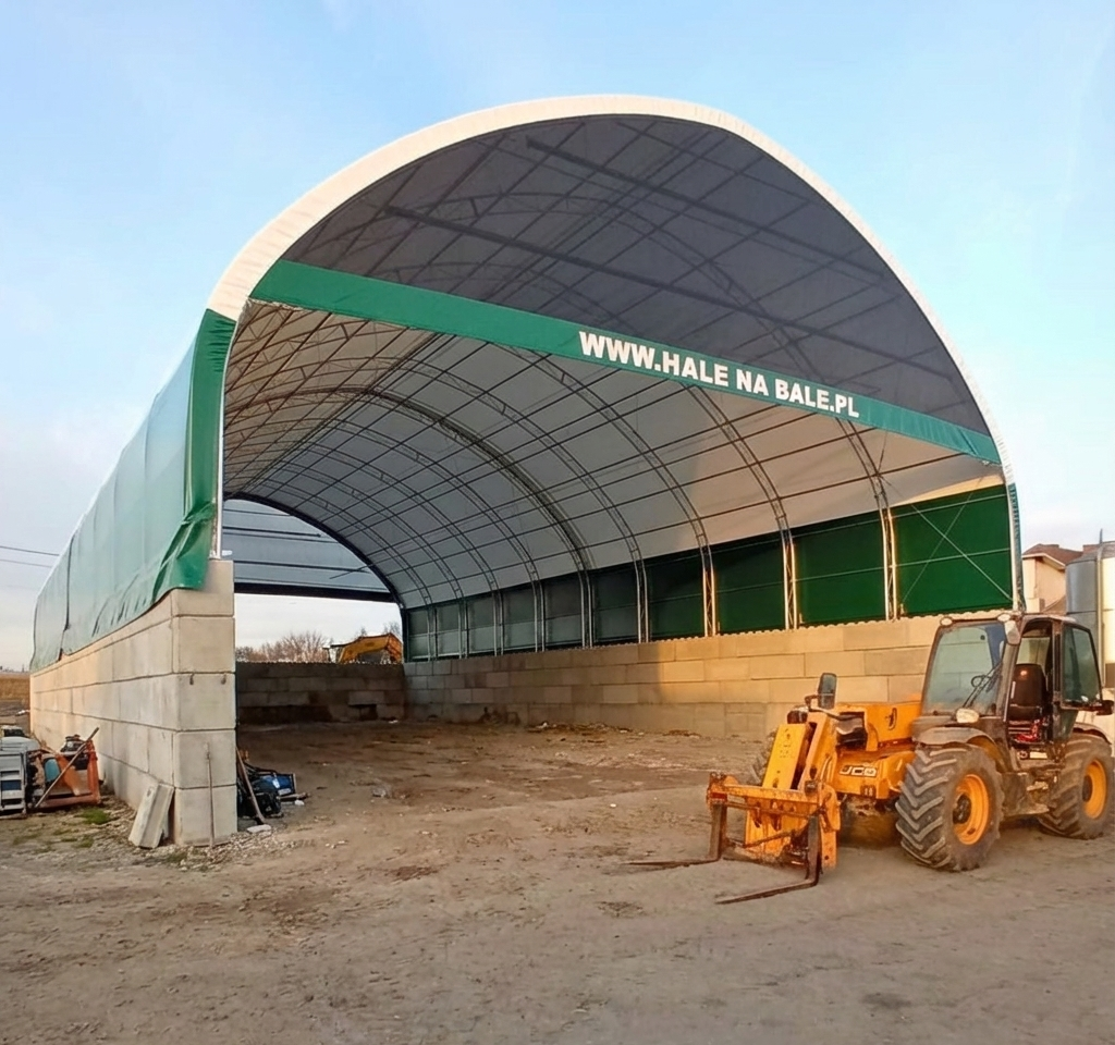 Robust, flexible structures for farming operations, including bale storage, machinery cover, and crop protection.